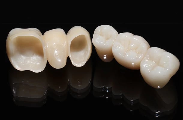 Entdecken Sie unsere hochwertigen Zahnprothesen, Kronen und Brücken.